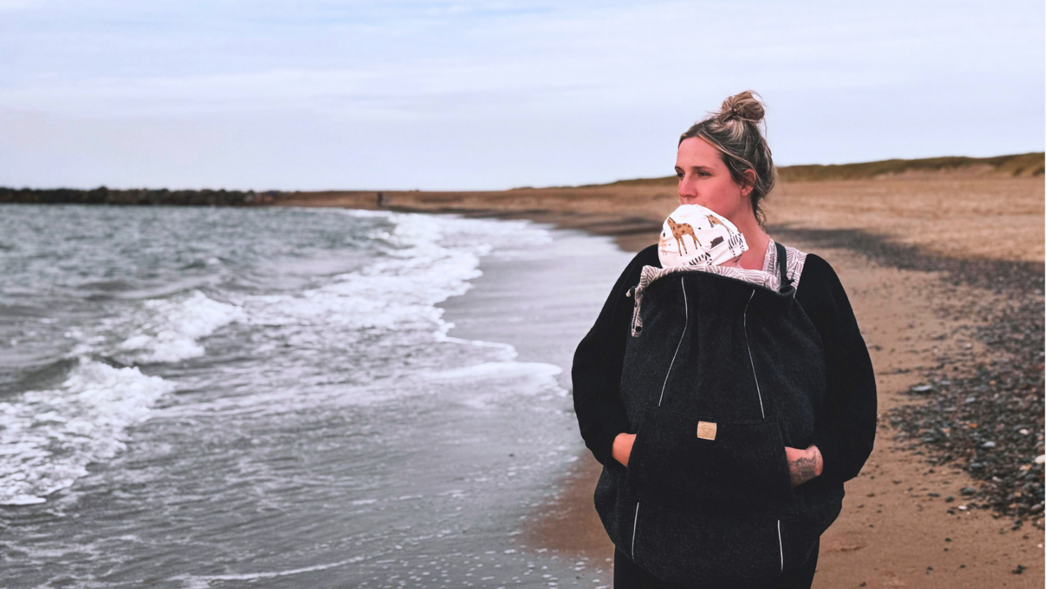 Passt über jede Trage, lässt sich einfach befestigen und hält warm – du kannst jede Jacke dazu ergänzen.