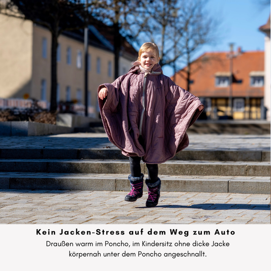 XL Kindersitzponcho Stepp – winddicht , reflektierend & vielen Designs