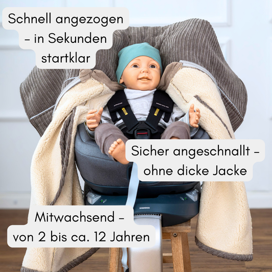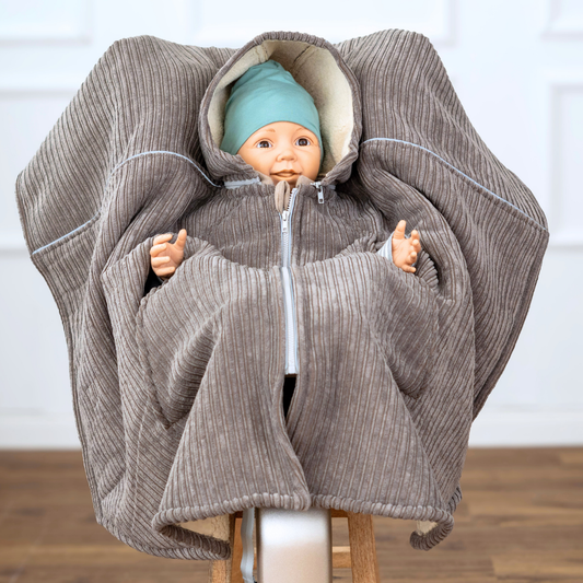 XL Kindersitzponcho Kuschel- Kord Brownie