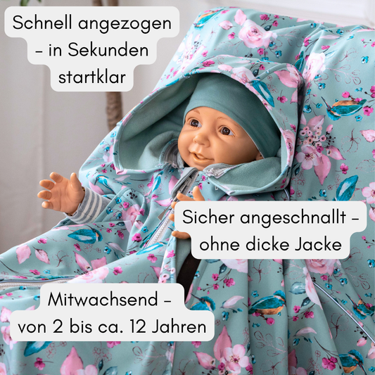 XL Kindersitzponcho Stepp – winddicht , reflektierend & vielen Designs