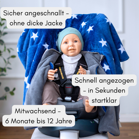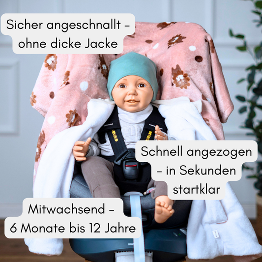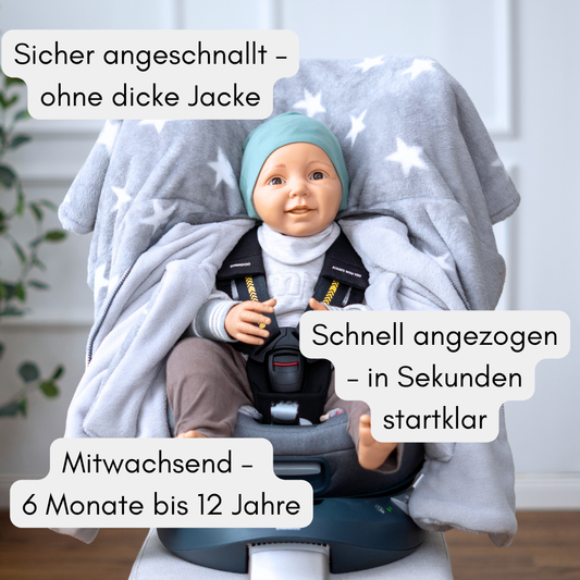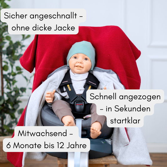 Warm, schnell, sicher: Unsere Einschlagdecken für die Babyschale halten kuschelig warm – ohne dicke Jacke, der Gurt liegt direkt am Körper. Passend für gängige Modelle (z. B. Maxi-Cosi, Cybex; 3- oder 5-Punkt).