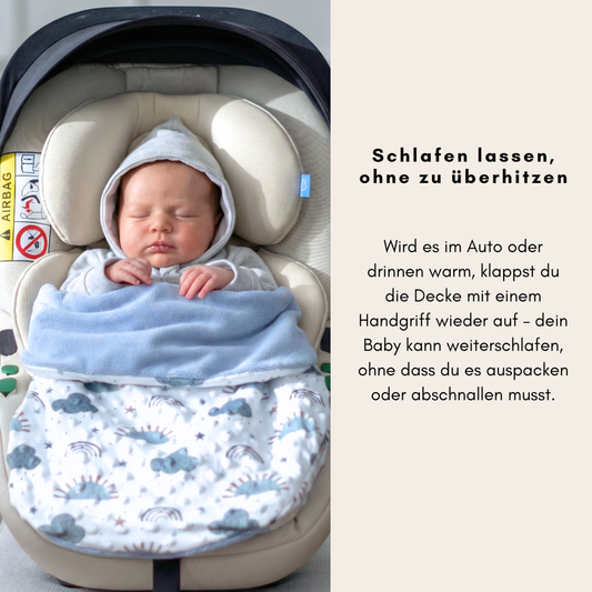 Einschlagdecke für das ganze Jahr - Wölkchen blau ( mit Bambusfleece)