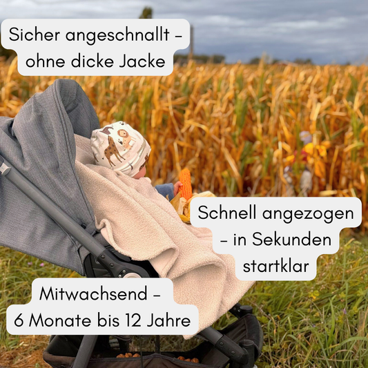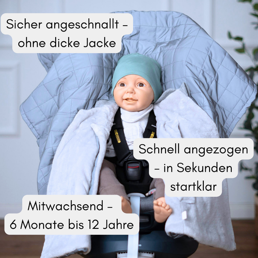 Sicher angeschnallt & warm unterwegs ganz ohne dicke Jacke.