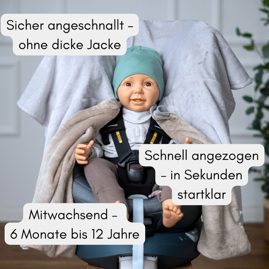 Sicher angeschnallt & warm unterwegs – ganz ohne dicke Jacke.