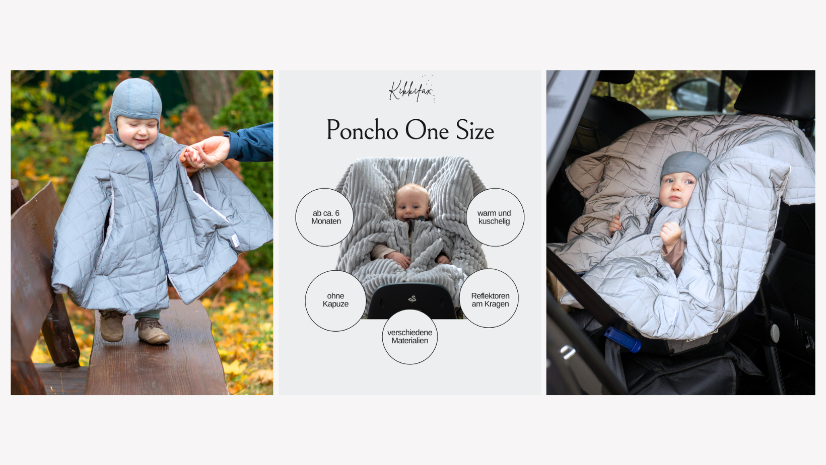 Unsere Kikkifax Kindersitzponchos sind die sichere Alternative zur Winterjacke im Auto. Sie halten dein Kind warm und ermöglichen gleichzeitig ein korrektes Anschnallen, da der Gurt direkt am Körper anliegt – ganz ohne dicke Kleidung, die die Sicherheit beeinträchtigen könnte.