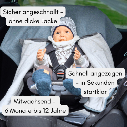 Kindersitzponcho One Size - Wollwalk "Pure Grey"