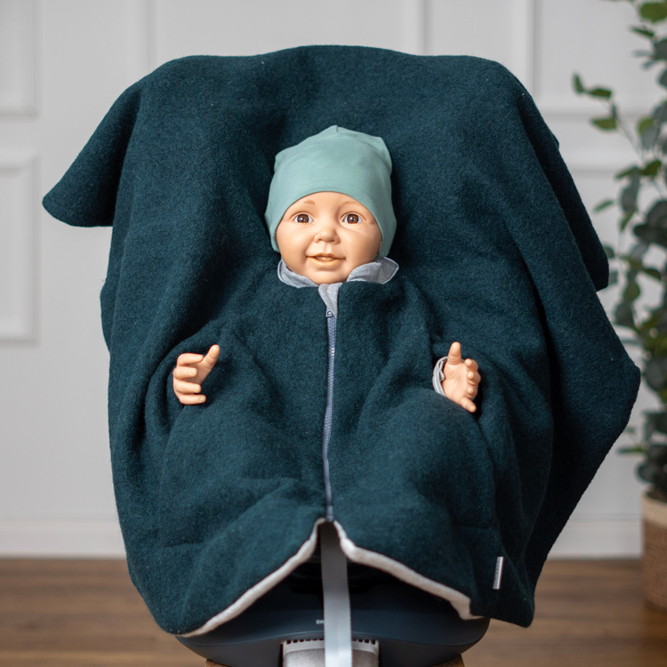 Kindersitzponcho One Size - Wollwalk "Petrol"