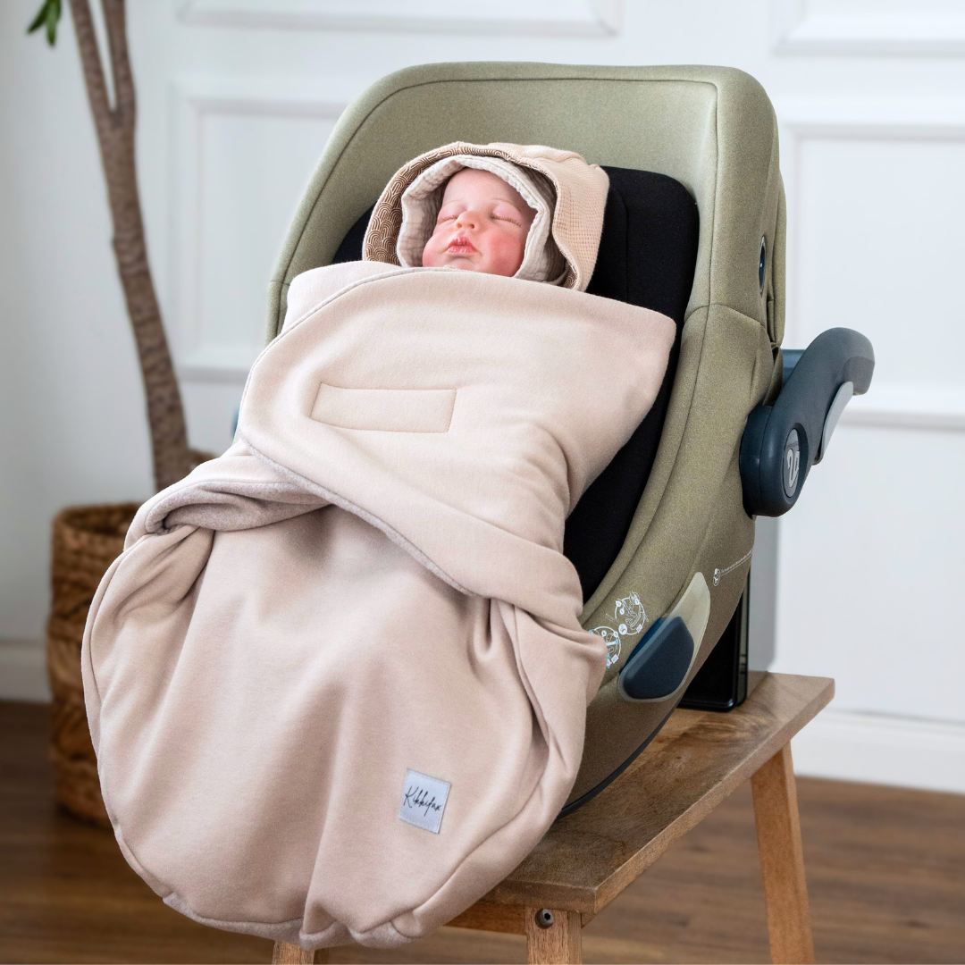 Die Kikkifax Einschlagdecke ist ein echtes Allround-Talent: Sie passt in alle Babyschalen-Modelle, ganz gleich, ob mit 3-Punkt- oder 5-Punkt-Gurt – und auch in Kombination mit jedem Neugeboreneneinsatz.