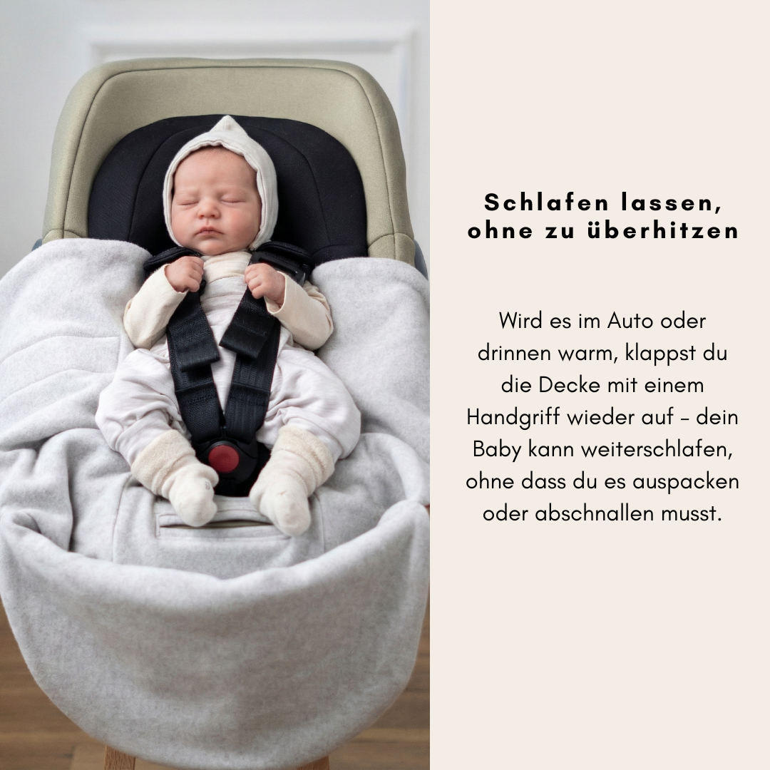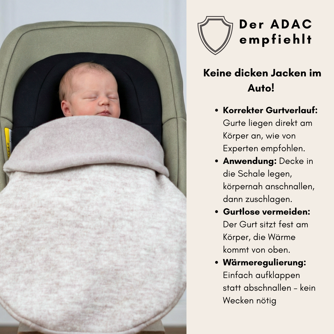 Wollwalk-Einschlagdecke für die Babyschale – warm eingepackt & körpernah angeschnallt