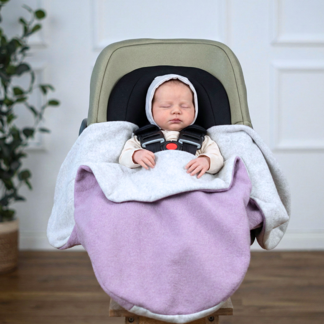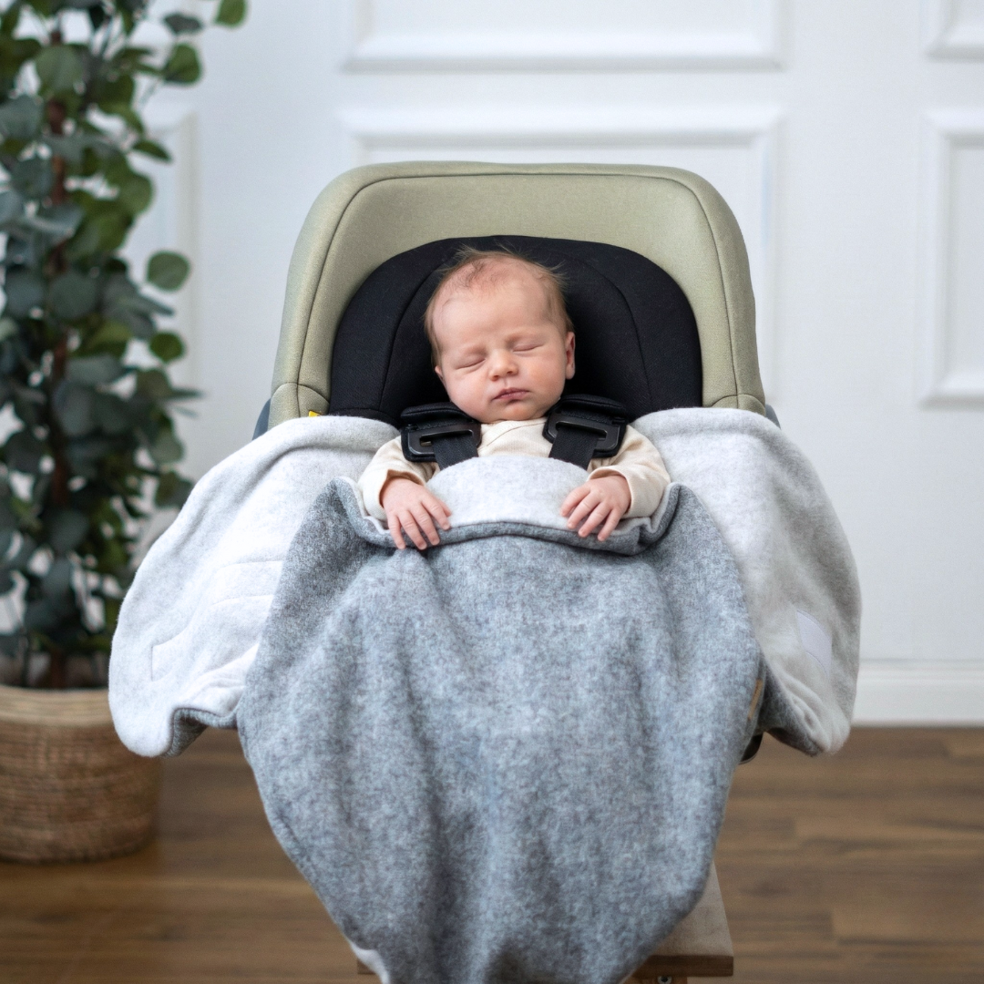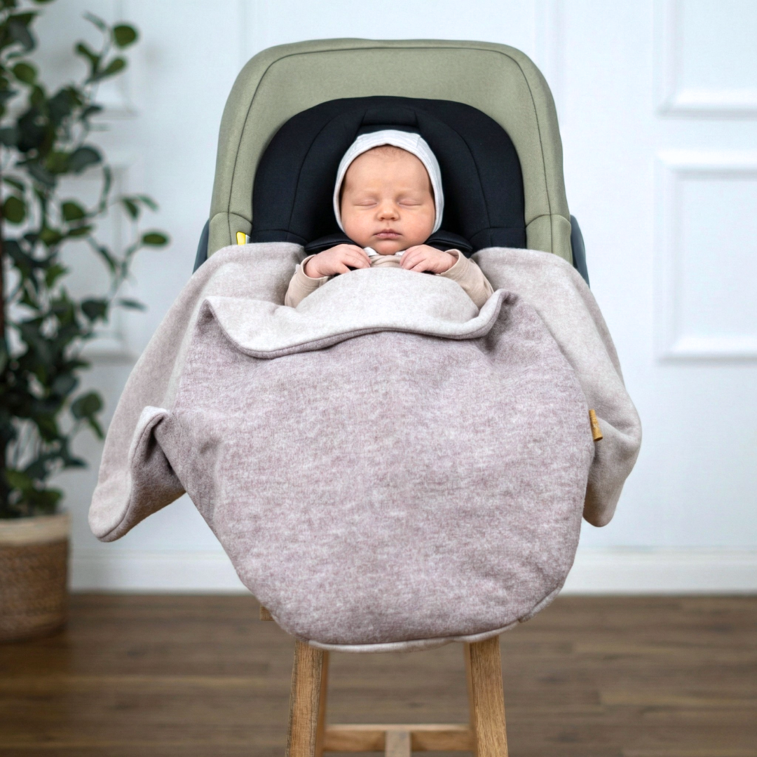 Die Decke passt in jede Babyschale mit 3- oder 5-Punkt-Gurt. Kein Verrutschen, kein Herumfummeln – einfach zudecken und wohlfühlen. Durch die mitwachsende Passform begleitet sie dich vom ersten Tag an bis weit ins erste Lebensjahr.