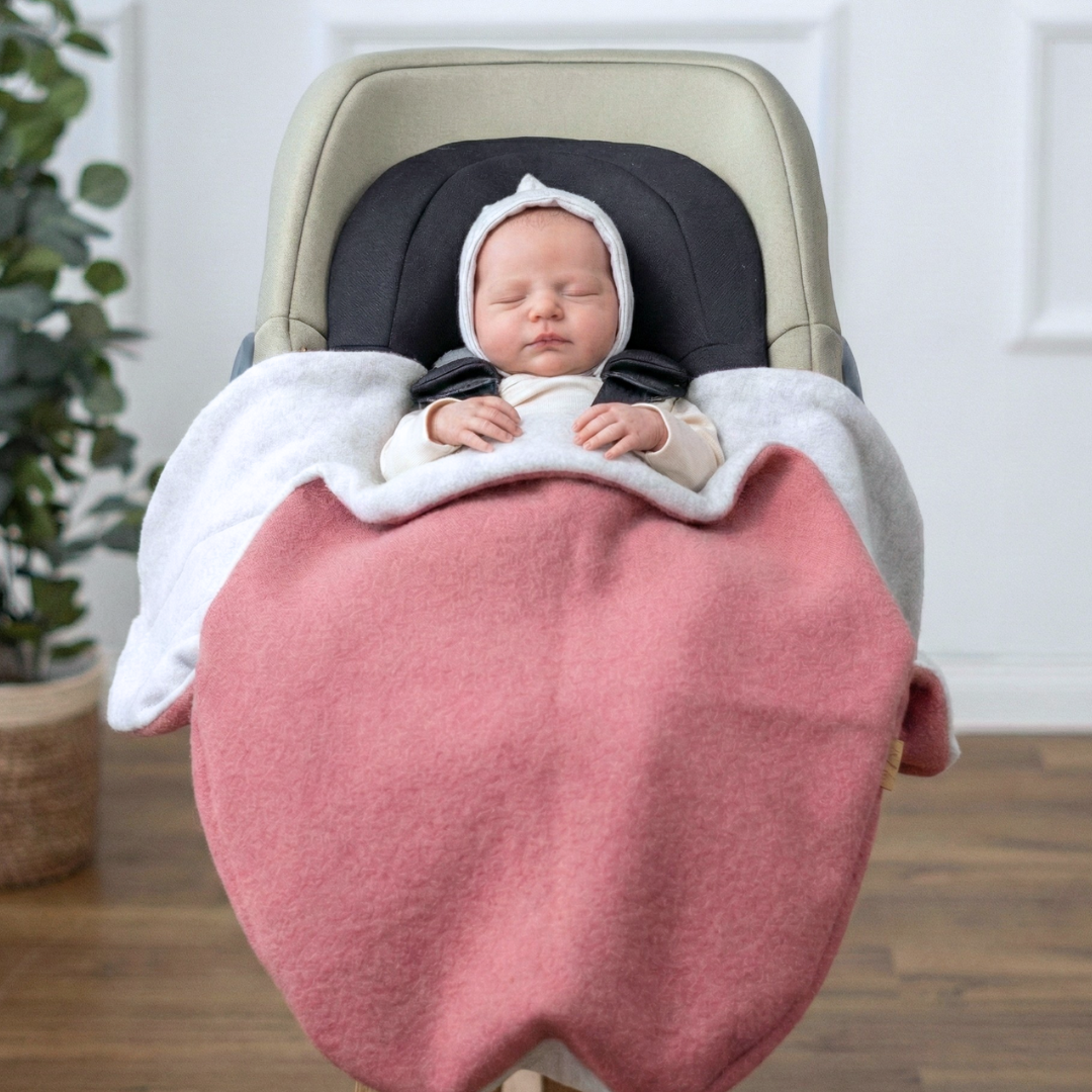 Ja, klar! Die Decke ist vielseitig einsetzbar: im Kinderwagen, in der Tragetasche, auf dem Sofa oder im Babybett– überall dort, wo dein Baby es warm, weich und geborgen haben soll. Durch den durchdachten Schnitt und die Klettverschlüsse kannst du einen kleinen Kokon formen, der deinem Baby ein Gefühl von Sicherheit vermittelt – fast wie im Mutterleib.