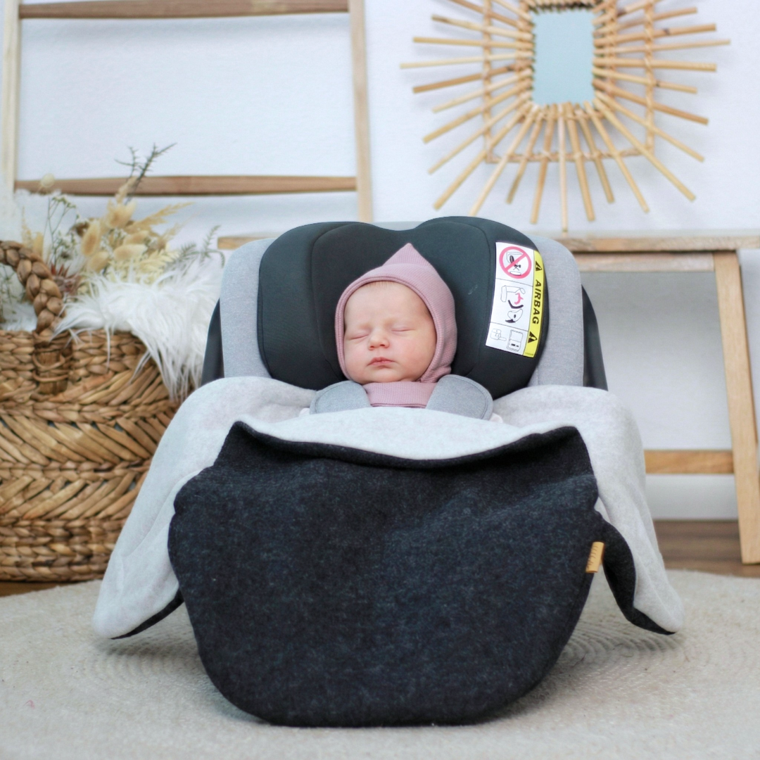 Die Einschlagdecke wächst mit deinem Baby. Vom Neugeborenen bis zum ersten Lebensjahr – sie ist genau die richtige Begleiterin für die Babyschalen-Zeit.
