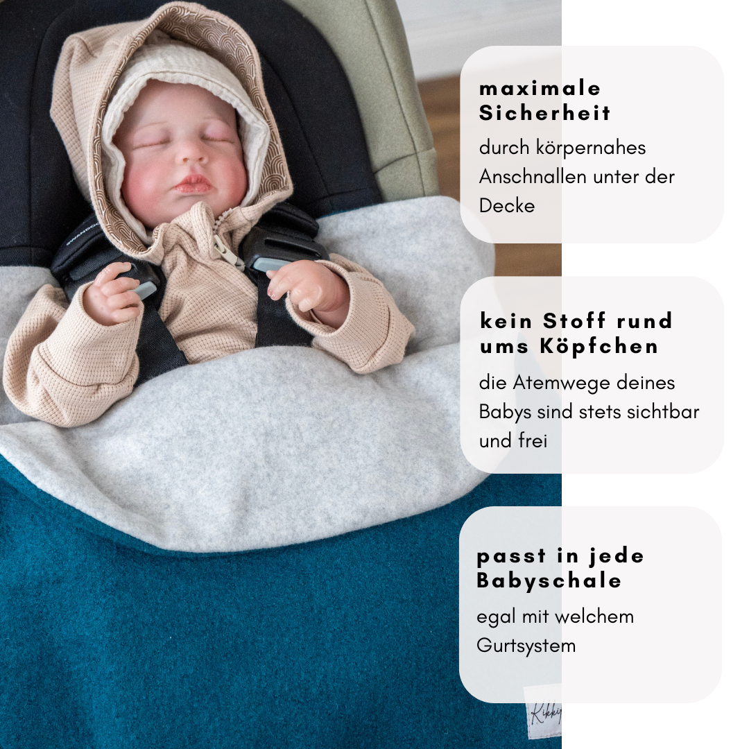 Wie passt die Decke in die Babyschale mit 5-Punkt-Gurt oder Neugeboreneneinsatz?