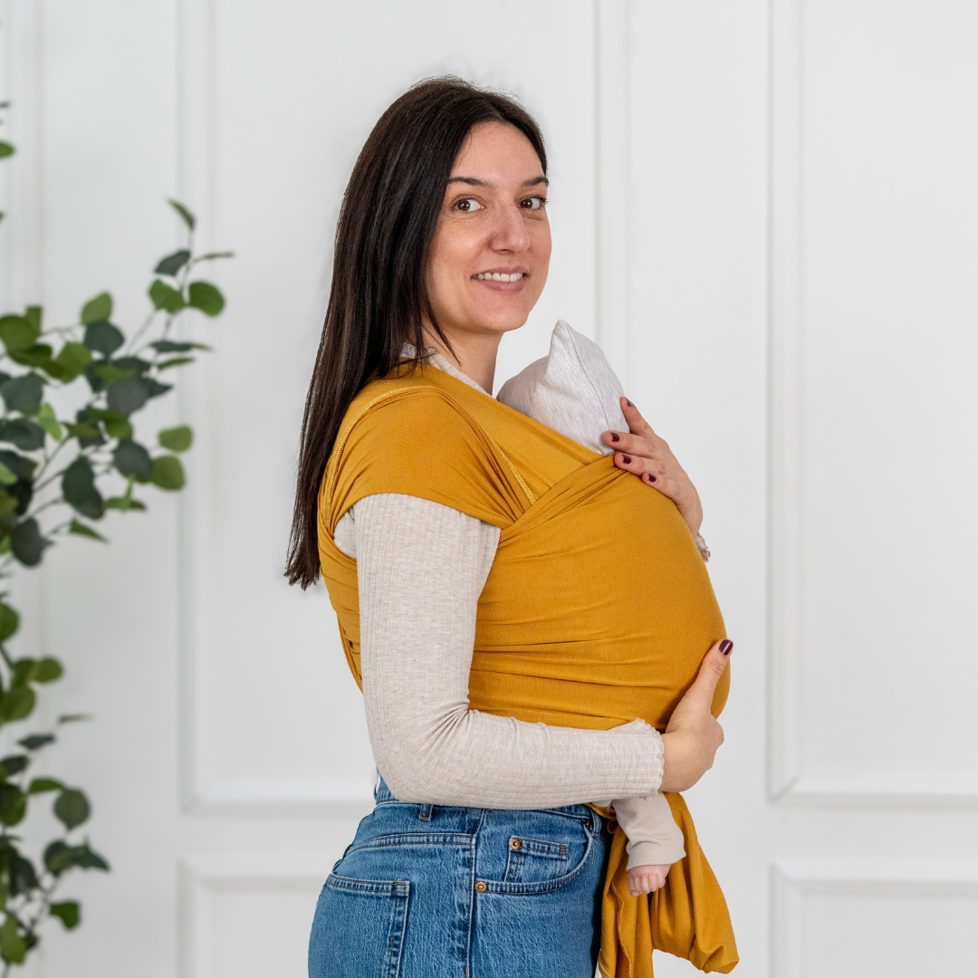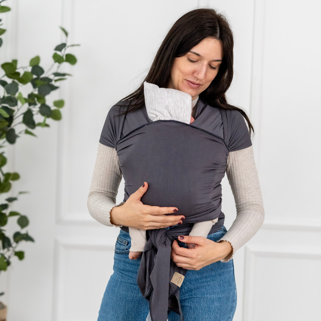 Unser elastisches Tragetuch trägt Babys bis ca. 11 kg. Am angenehmsten ist es in den ersten 6 Monaten, wenn dein Baby noch leicht und das Material besonders unterstützend ist.