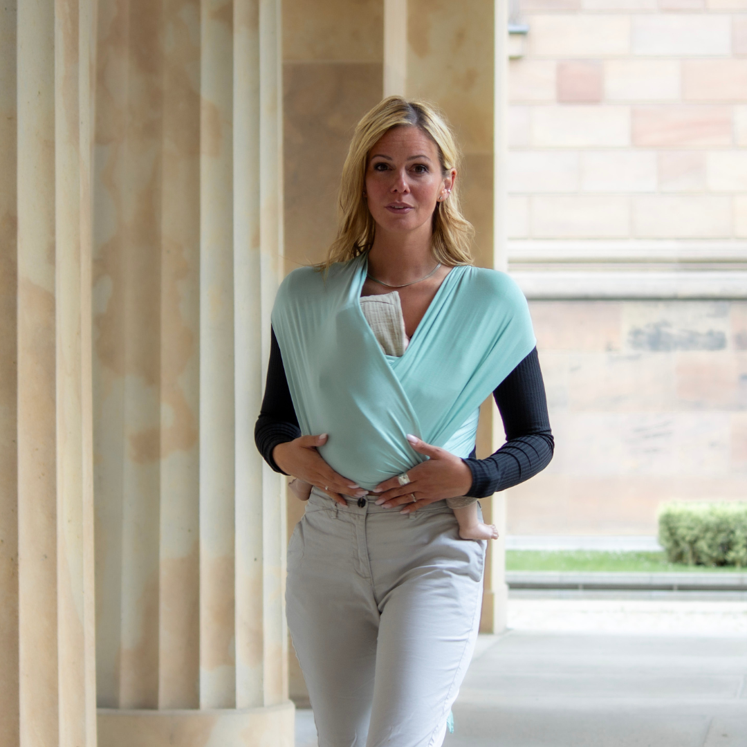 Nach der Geburt begleitet dich dasselbe Tuch beim Tragen deines Babys – ein Produkt für zwei Lebensphasen.