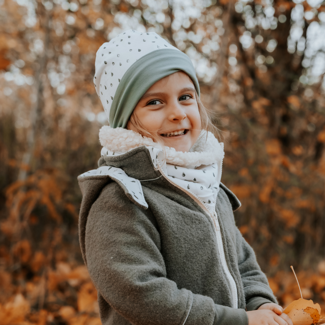 Unsere Beanies und Loops/Halstücher halten dein Kind kuschelig warm und sorgen für ein angenehmes Tragegefühl – perfekt für windige Tage und kühle Temperaturen. Achte darauf, dass sie gut sitzen und dein Kind sich frei bewegen kann. Detaillierte Hinweise zur Passform und Pflege findest du HIER.
