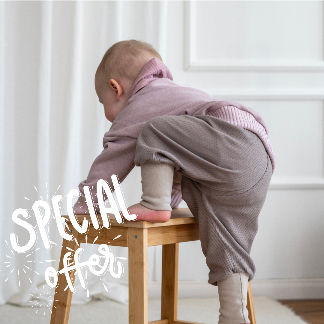 Du wählst nur zwei Dinge: die Größe und deinen Farb-Stil – neutral, typisch mädchenhaft oder typisch jungenhaft. Ob es eine luftige Jerseyhose oder eine bequeme Leggings wird – und aus welchem der beiden Stoffe – bleibt bis zur Lieferung eine liebevolle Überraschung!