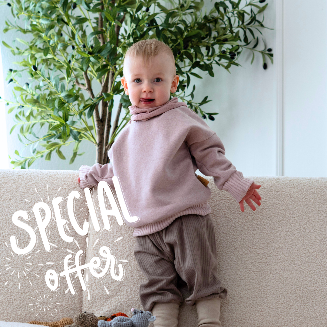 Du wählst nur zwei Dinge: die Größe und deinen Farb-Stil – neutral, typisch mädchenhaft oder typisch jungenhaft. Ob dein Kind einen glatten oder strukturierten Baumwollstoff trägt, bleibt bis zur Lieferung eine liebevolle Überraschung!