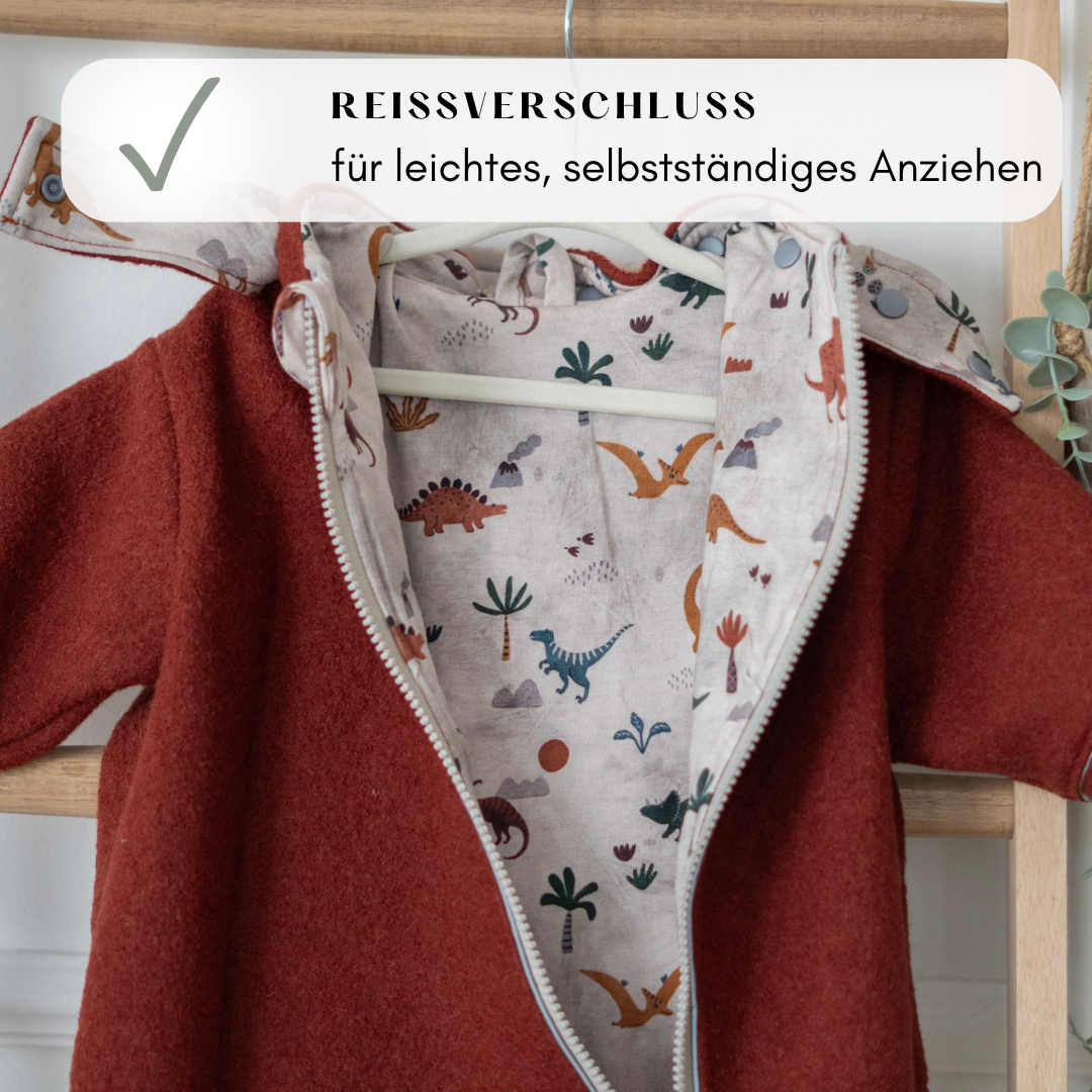 Mit dem Kikkifax Wollwalk-Overall ist dein Kind bestens gerüstet – egal, ob es draußen stürmt oder die ersten Frühlingsstrahlen zu spüren sind.